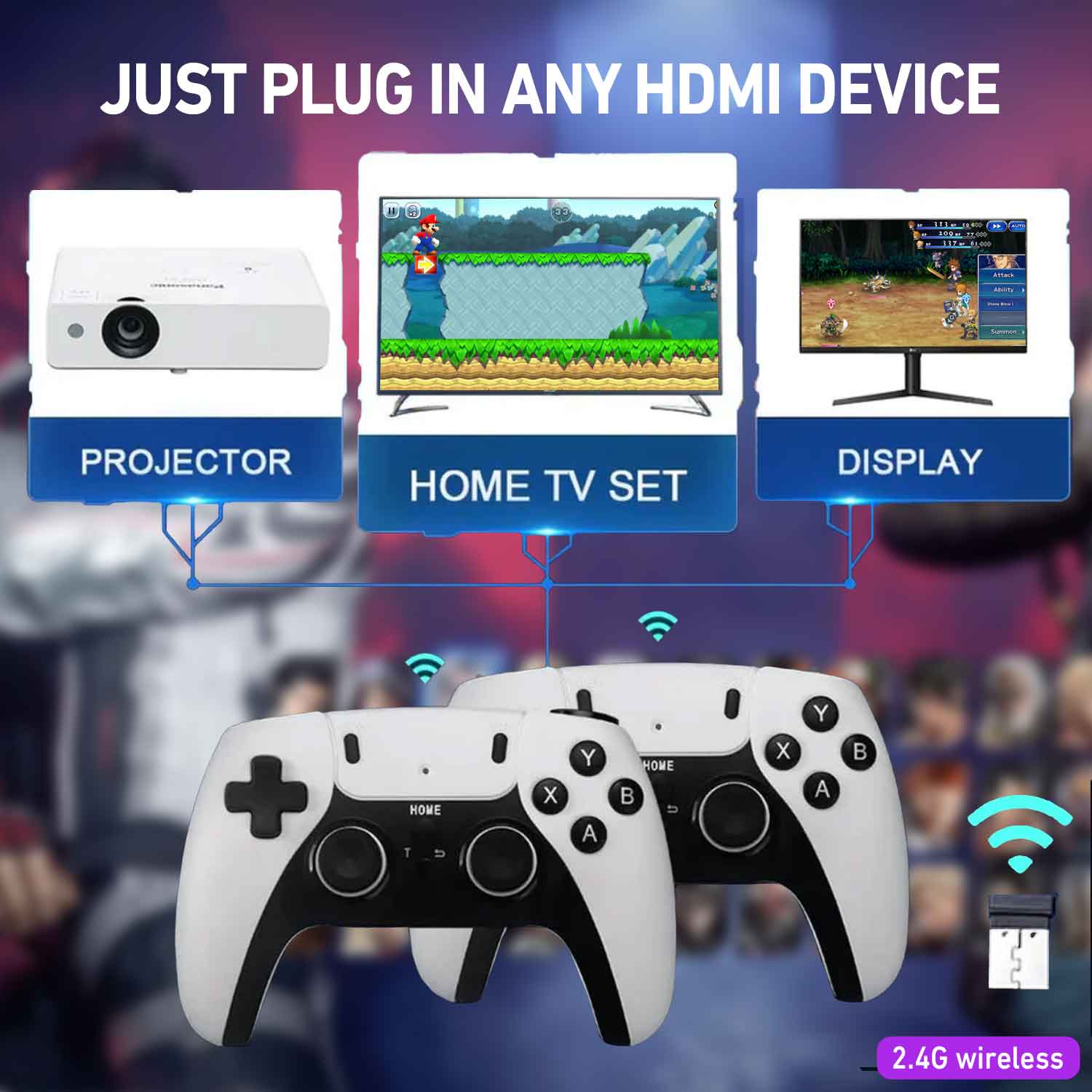 Boltz Retro Stick™ delivers 4K HD resolution and a 60Hz refresh rate for stunning clarity. Enjoy ergonomic wireless controllers for comfort and precision. Experience lag-free, high-quality gameplay.